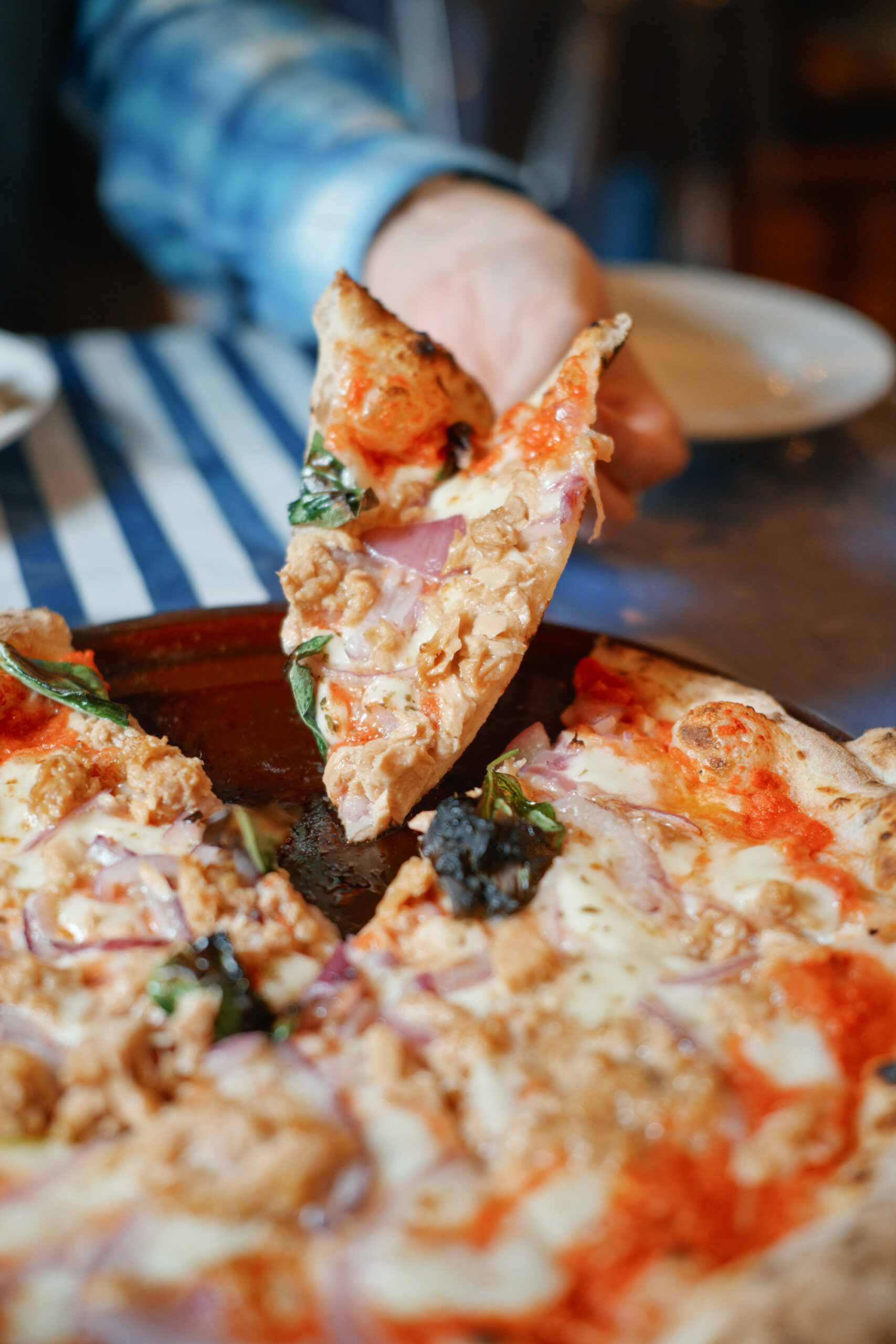 赤玉ねぎとまぐろツナ、バジル。